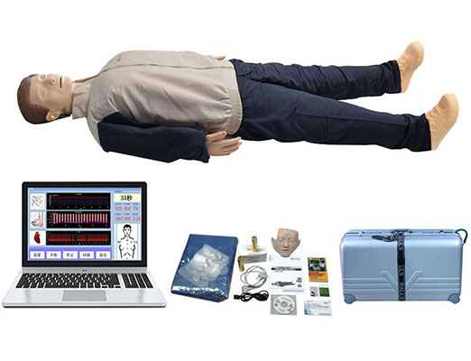 一、主要特点: ■ 本模型为成年男性整体人,采用热塑弹性体混合胶材料,肤质仿真度高。 ■ 解剖标志明显,具有仿真的头颈部,头部可水平转动180度,有利于清除异物。 ■ 胸部体表标志明显(胸骨角、乳头、剑突等),便于胸外按压的操作定位。 ■ 可触及颈动脉搏动,死亡状态下,颈动脉搏动消失,颈动脉搏动与有效按压相关联。 ■ 心肺复苏术:仰卧位,头可后仰,便于清除呼吸道异物,可进行胸外按压。 ■ 可进行口对口人工呼吸或者使用简易呼吸器辅助呼吸,有效人工呼吸可见胸廓起伏。 ■ 瞳孔示教:死亡状态下,瞳孔散大,抢救成功后,双侧瞳孔由散大变为正常。 ■ 模拟人关节灵活,可进行搬运练习。 二、软件功能: ■ 生命特征模拟:瞳孔变化及颈动脉的搏动。 ■ 模拟标准气道开放。 ■ 人工呼吸与胸外按压时:模拟心脏搏动显示、模拟心电图显示。 ■ 人工手位胸外按压时: 1、动态条码指示灯显示按压深度; 2、计数显示;详细记录按压正确和错误的次数,并区分错误的原因; 3、 语言提示:中文语音提示,详细提示按压错误的具体原因,以便训练者及时改正; 4、实时操作波形图显示按压操作的过程; 5、实时矩形图显示按压深度(通过红色、绿色、黄色、灰色直观体现操作过程)。 ■ 人工口对口呼吸(吹气)时: 1、动态条码指示灯显示吹气量大小; 2、计数显示:详细记录人工呼吸正确和错误的次数,并区分错误的原因; 3、语言提示:中文语音提示,详细提示人工呼吸错误的具体原因,以便训练者及时改正; 4、实时操作波形图显示人工呼吸操作的过程; 5、实时矩形图显示人工呼吸量大小(通过红色、绿色、黄色、灰色直观体现操作过程)。 ■ 操作时间、CPR操作比例、CPR循环次数可单项设定; ■ 操作方式:训练操作、模拟实战、标准考核。 ■ 语言设定:可进行语言提示设定及提示音量调节设定或关闭语言提示设定; ■ 成绩单保存打印,可连接通用打印机对成绩单进行打印; ■ 可进行多媒体教学,也可进行与投影仪、触摸屏等连接播放教学; ■ 学员管理:可自由编辑学员名称及编号,用于存档; ■ 检查瞳孔反应:死亡状态下,瞳孔散大;抢救成功后,双侧瞳孔由散大变为正常。 ■ 检查颈动脉反应:用手触摸检查,死亡状态下,颈动脉无搏动;抢救成功后,颈动脉连续搏动。 标准套配置: ■ 高级复苏全身人体模型一具 ■ 豪华手拉推式人体硬塑箱一只 ■ 计算机(用户自配或选配) ■ CPR安装软件一套 ■ 电源适配器一套 ■ USB连接线一条 ■ 复苏操作垫一条 ■ 屏障面膜(50张/盒)一盒 ■ 可换肺囊装置四套 ■ 可换面皮一只 ■ 新操作指南光盘1盘 ■ 现场急救常用技术使用手册 1 本 ■ 使用说明书一本 ■ 保修卡、合格证 注:计算机用户自配